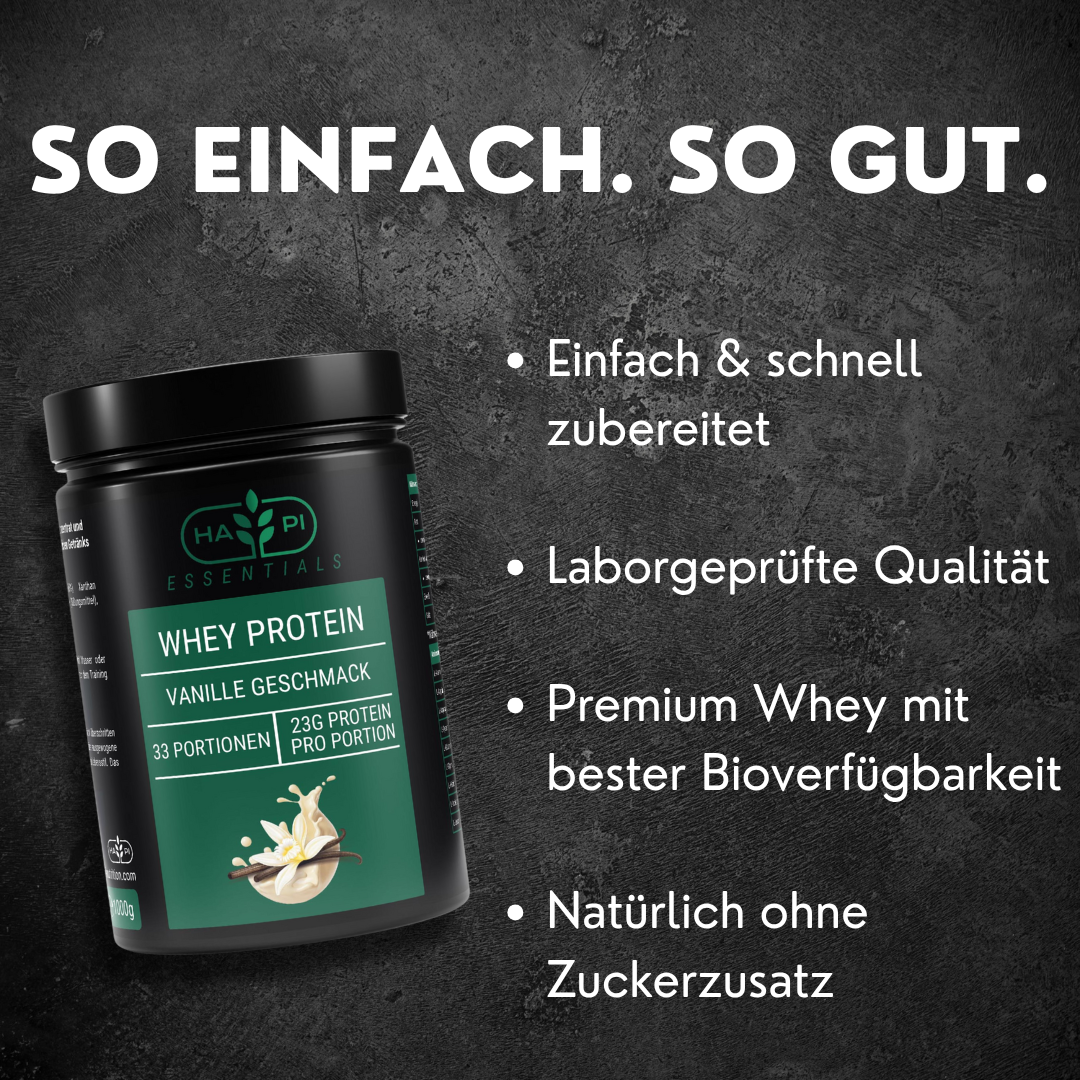 Unser Premium Whey Protein Vanille liefert dir hochwertige Proteine für den Muskelaufbau und die Regeneration – cremig im Geschmack, leicht löslich und mit bestem Nährwertprofil.